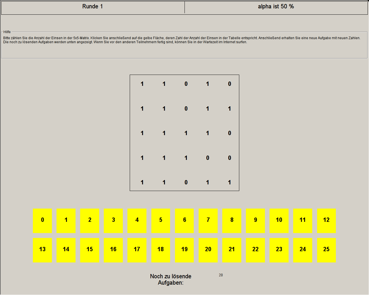 In the experiment we use a real effort task where participants have to count the number of 1s in a matrix of 1s and 0s: